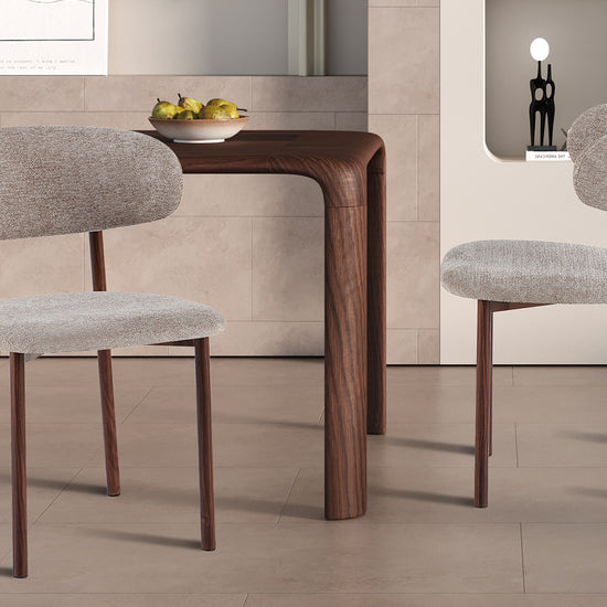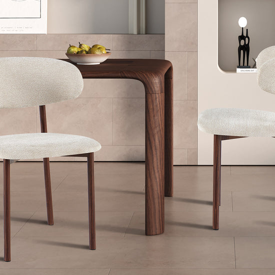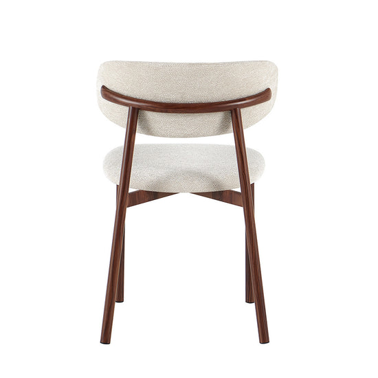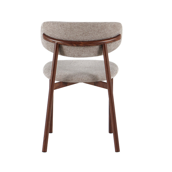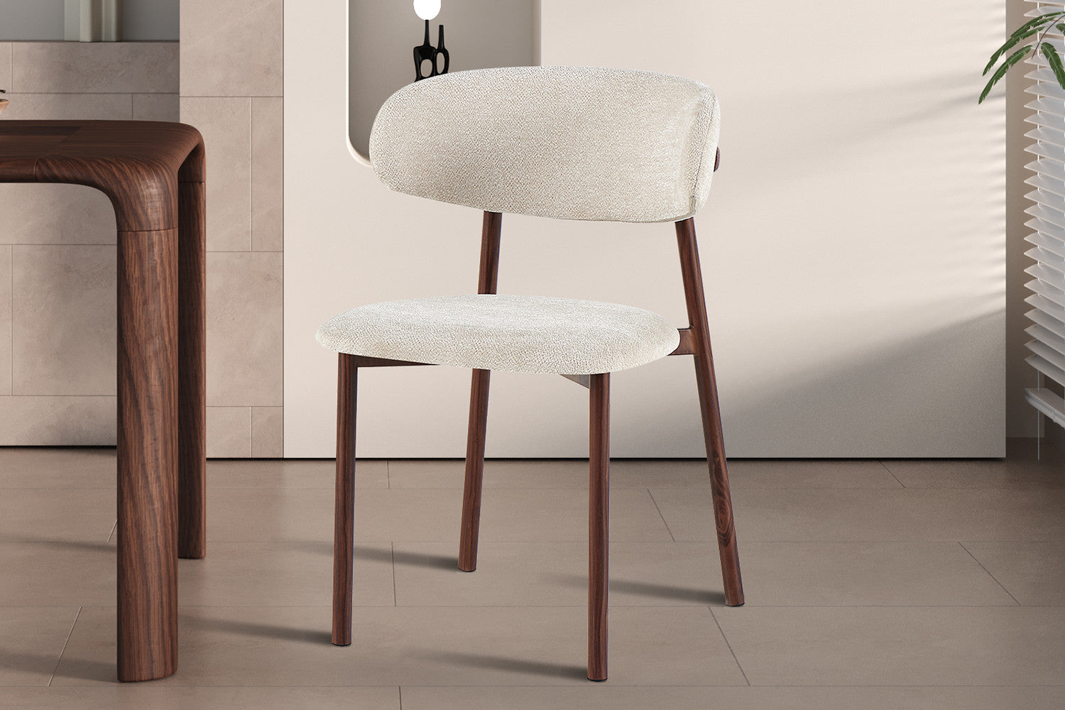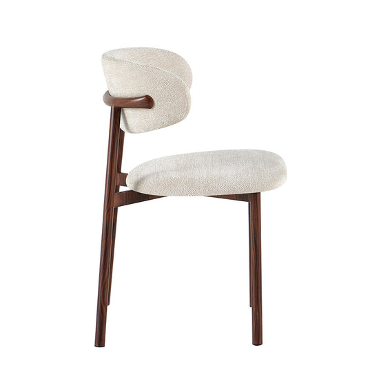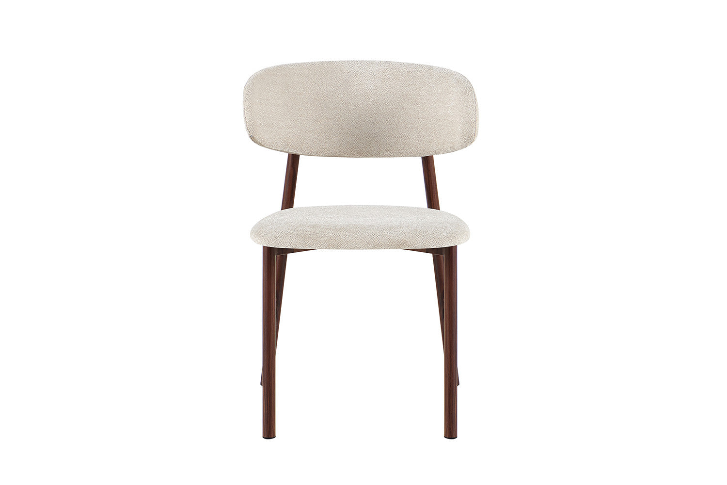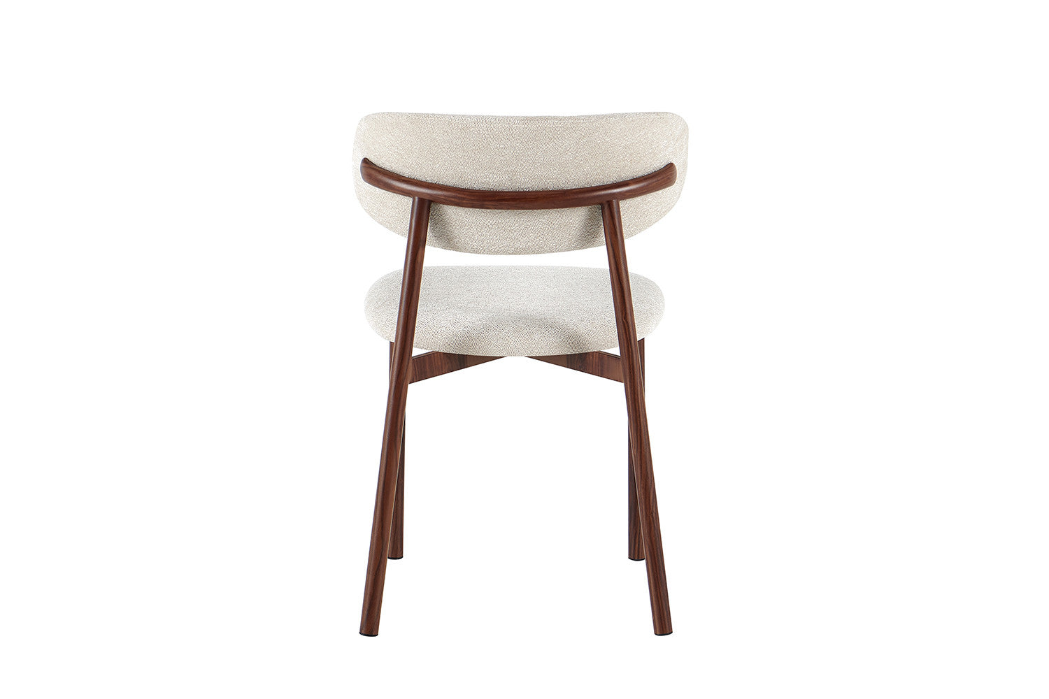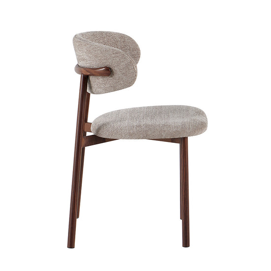 Deze elegante stoel combineert verfijnd design met optimaal zitcomfort. Dankzij de zachte, afgeronde vormen en het warme houten frame past dit model moeiteloos in zowel moderne als tijdloze interieurs. De comfortabele, gestoffeerde zitting en rugleuning zorgen voor een aangename zitervaring, ideaal voor dagelijks gebruik aan de eettafel.