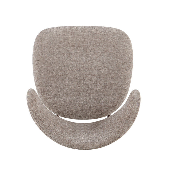 Daarnaast is de stoel verkrijgbaar in twee zorgvuldig geselecteerde stoffen, zodat je eenvoudig kan afstemmen op verschillende interieurstijlen. Op de foto wordt de donkere stof getoond, daarnaast is ook een lichtere beige variant beschikbaar.