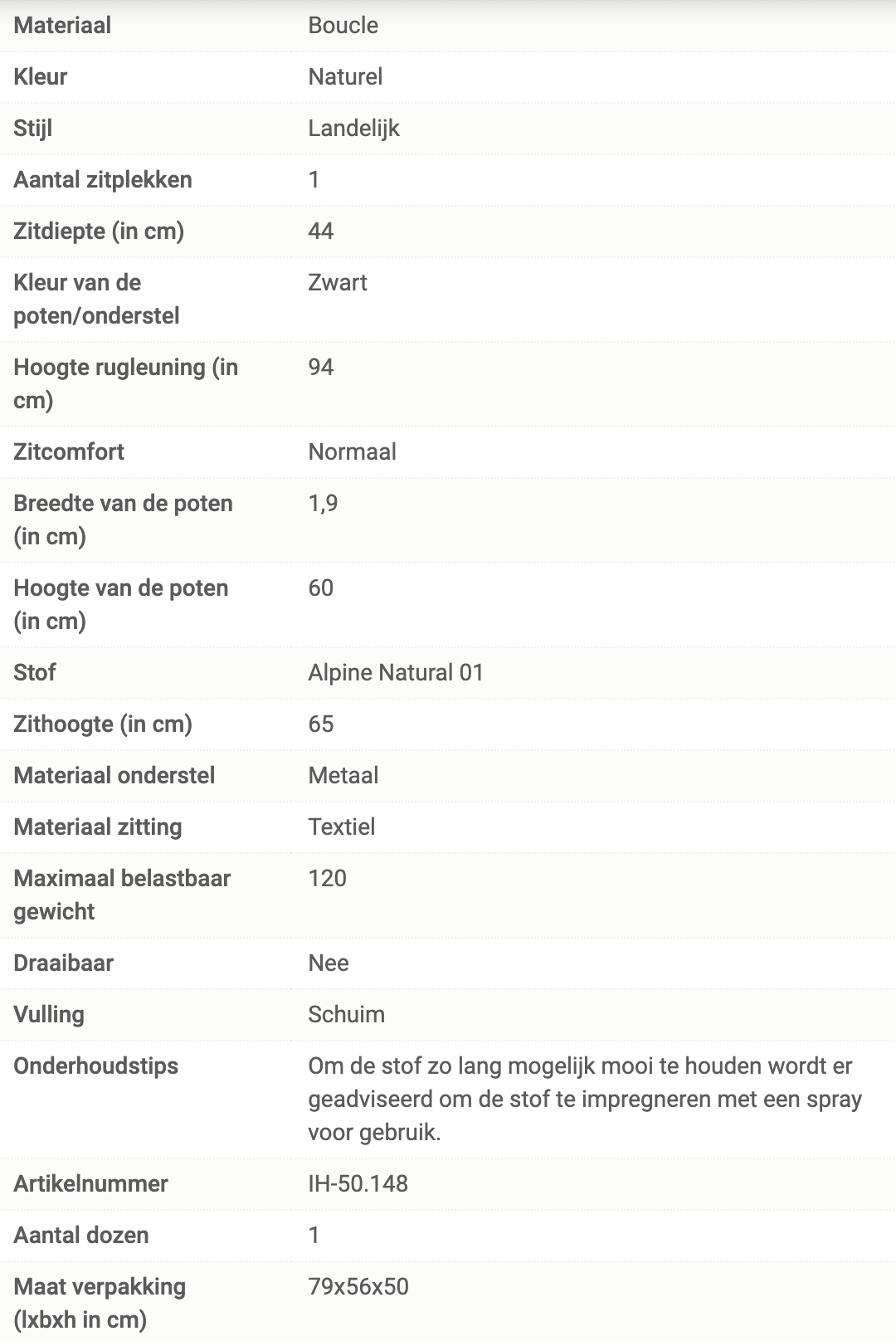 Barkruk Noah is uitgevoerd in naturel bouclé, een naturelkleurige geweven stof van onregelmatig bewerkte garens. Noah bestaat uit een rechthoekige rugleuning voorzien van afgeronde hoeken, aparte rugleuning en zitting, die verbonden zijn door een prachtig doorlopend zwart frame, voorzien van een handgreep op de achterkant van de rugleuning. Dit maakt Noah extra functioneel waardoor het aanschuiven van deze eetkamerstoel nog makkelijker wordt. De sledepoot zorgt voor een luchtig en elegant uiterlijk en de extra opstap maakt de zit nog net even iets makkelijker en comfortabeler.