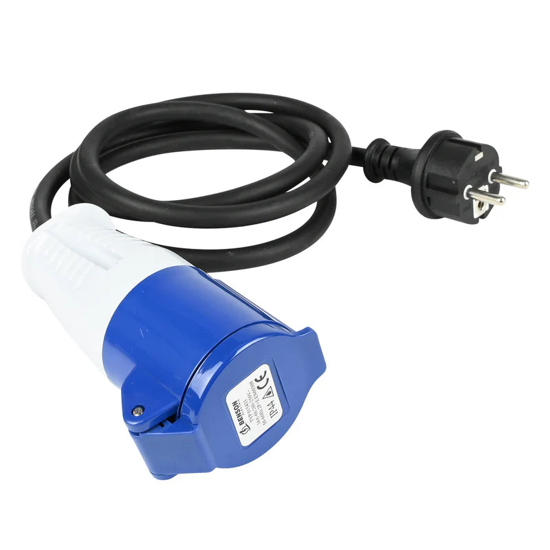 Ideaal voor het veilig aansluiten van elektrische apparaten op een CEE-stopcontact in omgevingen waar spatwater of stof aanwezig kan zijn, zoals bij kamperen of buitenprojecten.