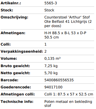 COUNTERSTOEL ARTHUR LICHTGRIJS
