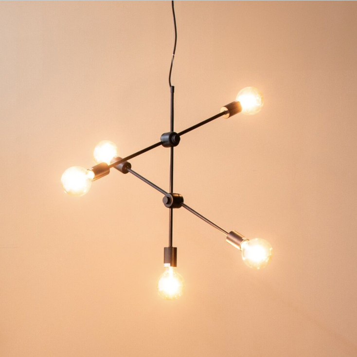 Hanglamp Stilo is een prachtige lamp met vijf lichtpunten. Door de drie slanke buizen die elegant aan elkaar verbonden zijn door een draaisysteem, biedt deze lamp een unieke en veelzijdige verlichtingsoplossing voor elke ruimte.