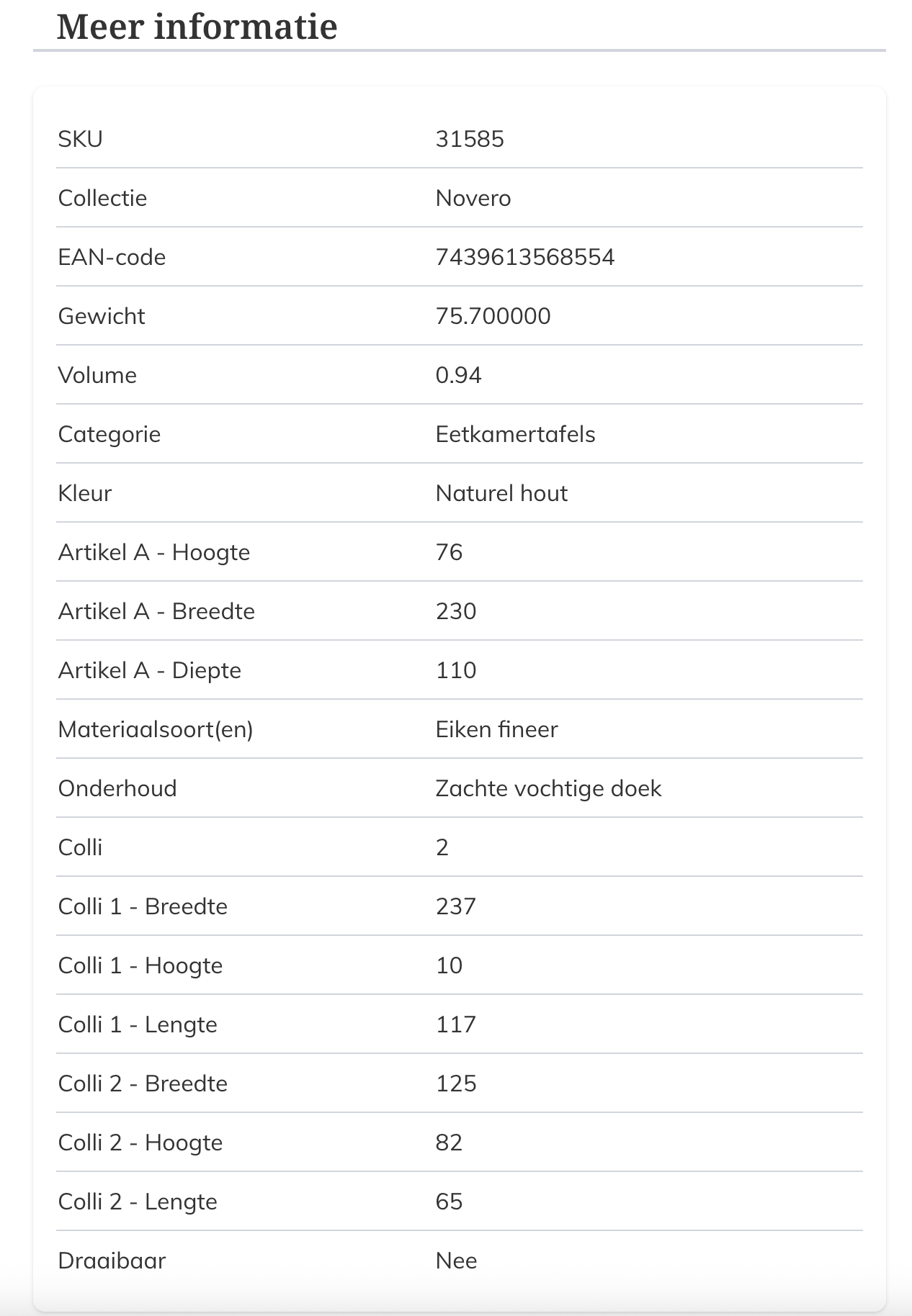 NOVERO TAFEL 230CM