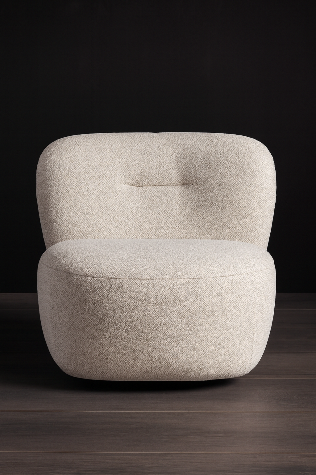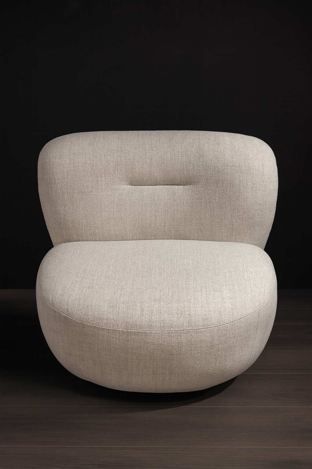 Ontdek de perfecte mix van comfort, moderne elegantie en zachte, afgeronde vormen. Deze stijlvolle loungestoel is ontworpen om elke ruimte — van woonkamer tot slaapkamer of hotel-lobby — een luxueuze en uitnodigende uitstraling te geven.