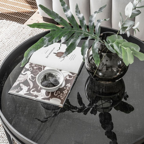 SALONTAFEL GOLDEN FIBER HEEFT EEN AFMETING VAN 37XØ75 CM EN IS OOK BESCHIKBAAR IN EEN KLEINER FORMAAT.