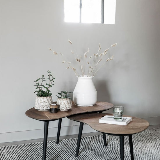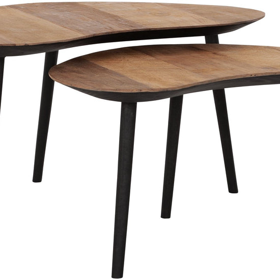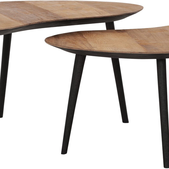 Salontafel Organus Naturel is een set die bestaat uit 2 salontafels. De salontafels hebben een organische vorm. De afmetingen van de tafels zijn 35x69x51 cm en 40x83x61 cm.