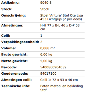 Stoel 'Antura' Stof Ote Lisa 453 Lichtgrijs