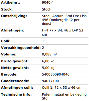 Stoel 'Antura' Stof Ote Lisa 456 Donkergrijs