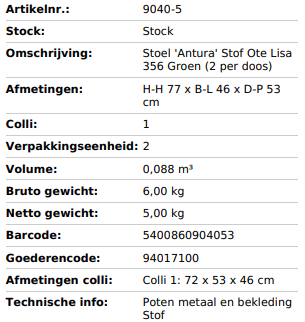Stoel 'Antura' Stof Ote Lisa 356 Groen