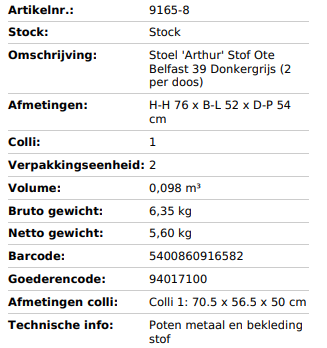 STOEL ARTHUR DONKERGRIJS