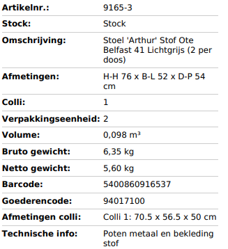 STOEL 'ARTHUR' STOF OTE BELFAST 41 LICHTGRIJS