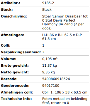 Stoel 'Lamor' Draaibaar tot 0 Stof Davis Perfect Harmony 04 Zand