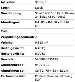 Stoel 'Lisa' Stof Fabb Raven 24 Beige